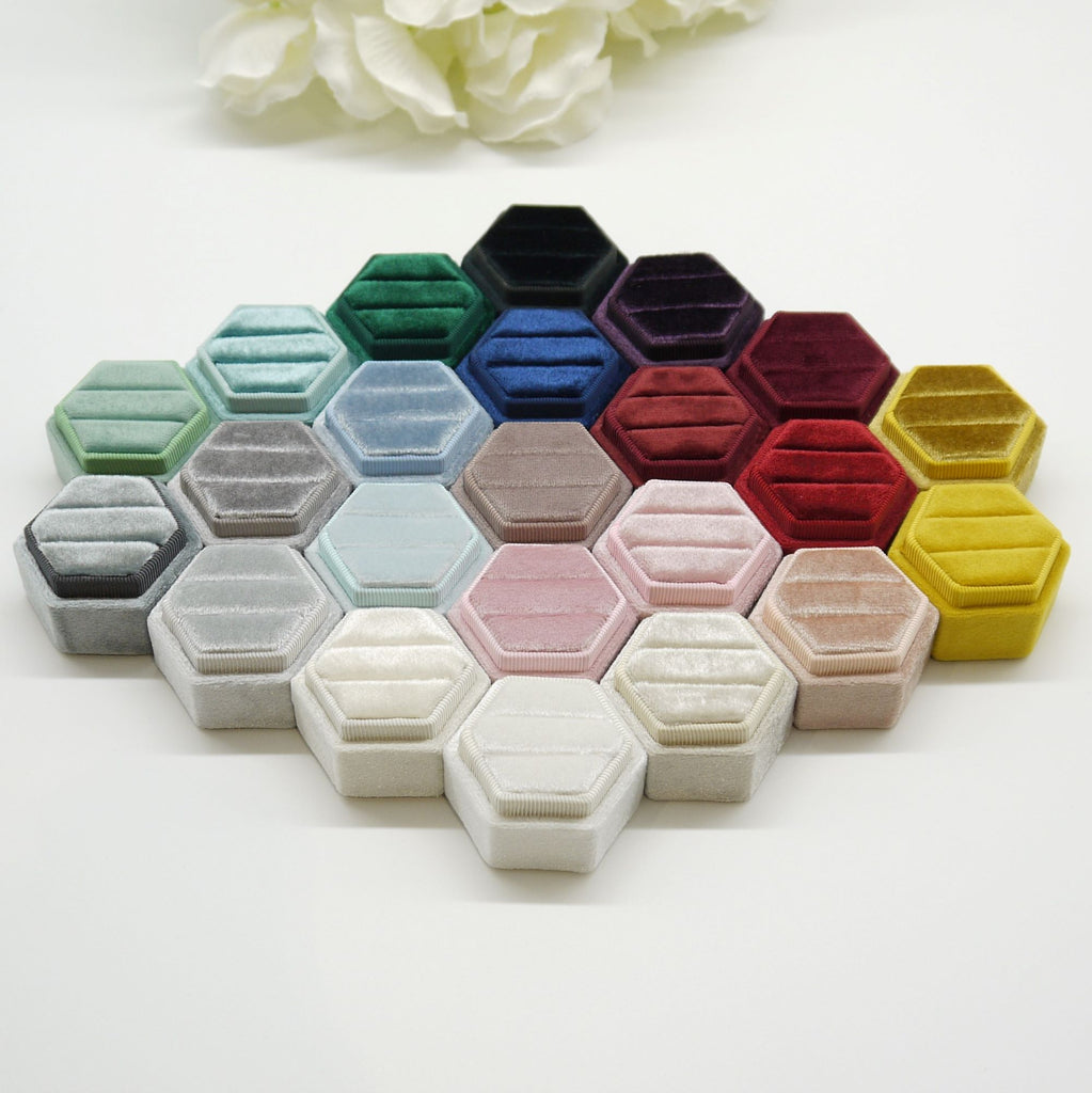 A really beautiful and high-quality velvet double ring box which is perfect as a ring bearer box, for wedding day photos or for storage purposes; it’s a great size ring box, comfortably fitting a ring in each of the slots. With the matching velvet cushion, rings stand out beautifully on photographs.